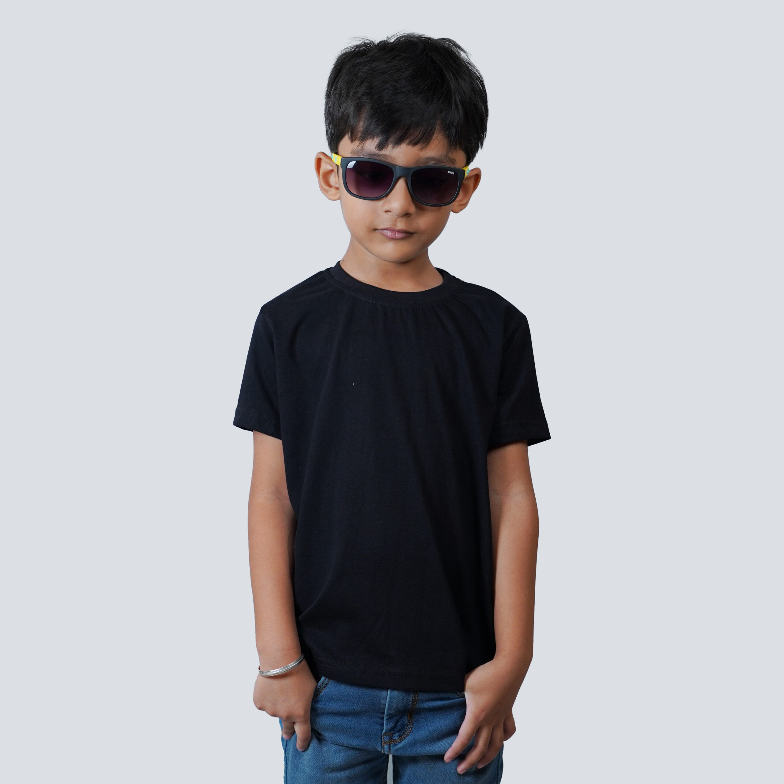 Kids Round Neck T-Shirt Half Sleeves 100% Cotton Rich Ultra Soft Fabric Comfortable Stylish Solid colour Original Branded Tshirt for Boy.”Black”