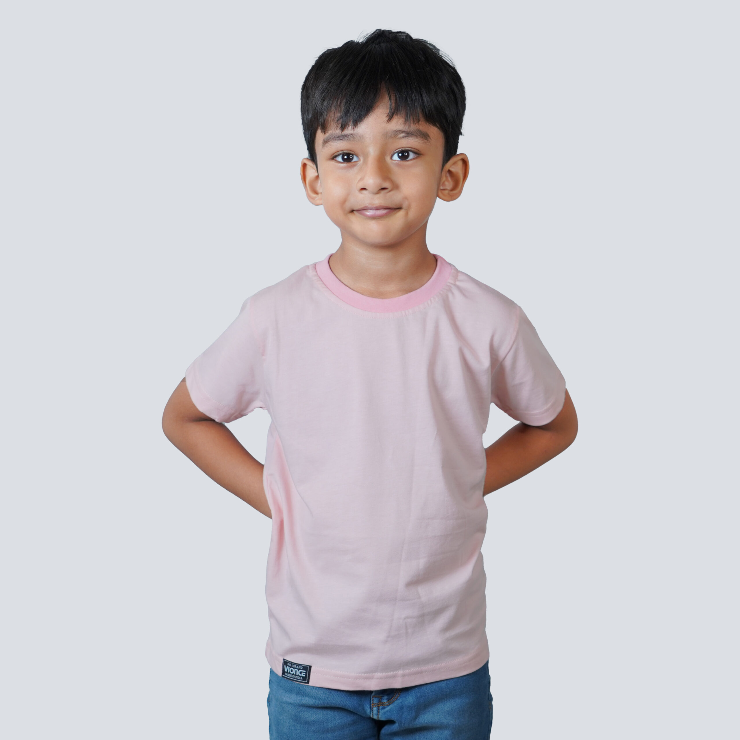 Kids Round Neck T-Shirt Half Sleeves 100% Cotton Rich Ultra Soft Fabric Comfortable Stylish Solid colour Original Branded Tshirt for Boy.”Baby Pink”