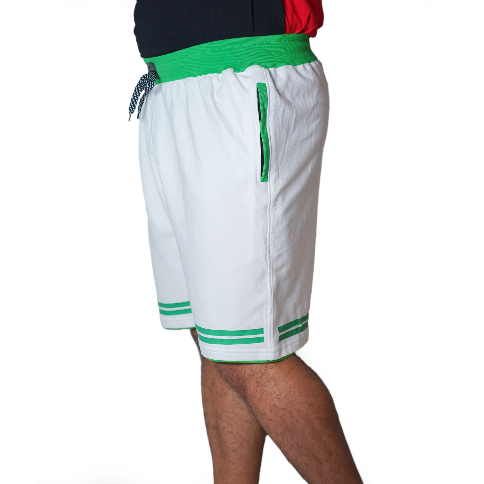 Pure Cotton Jumbo Half Pant with Chain Pocket White and Parrot Green