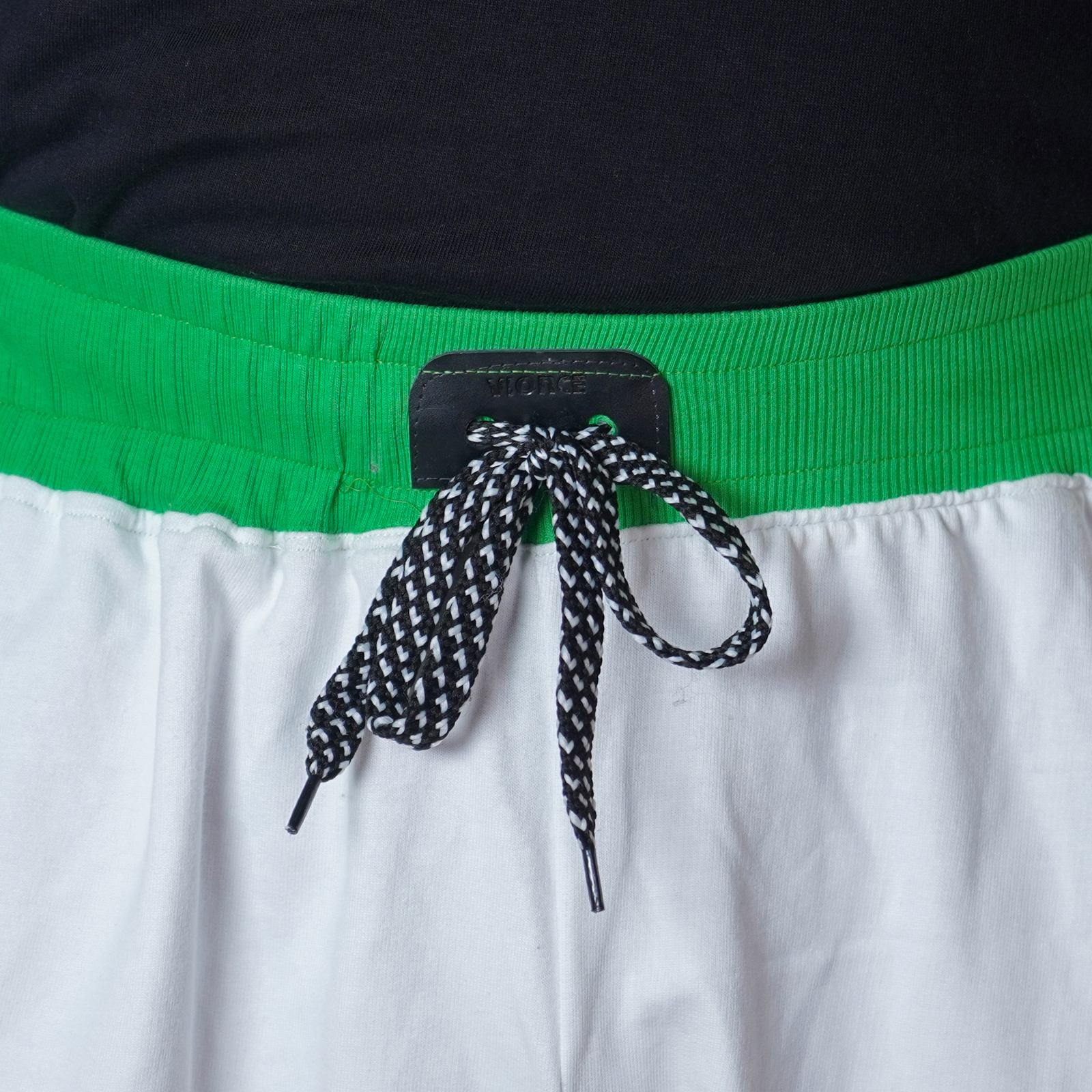 VIONCE Pure Cotton Jumbo Half Pant with Chain Pocket White and Parrot Green